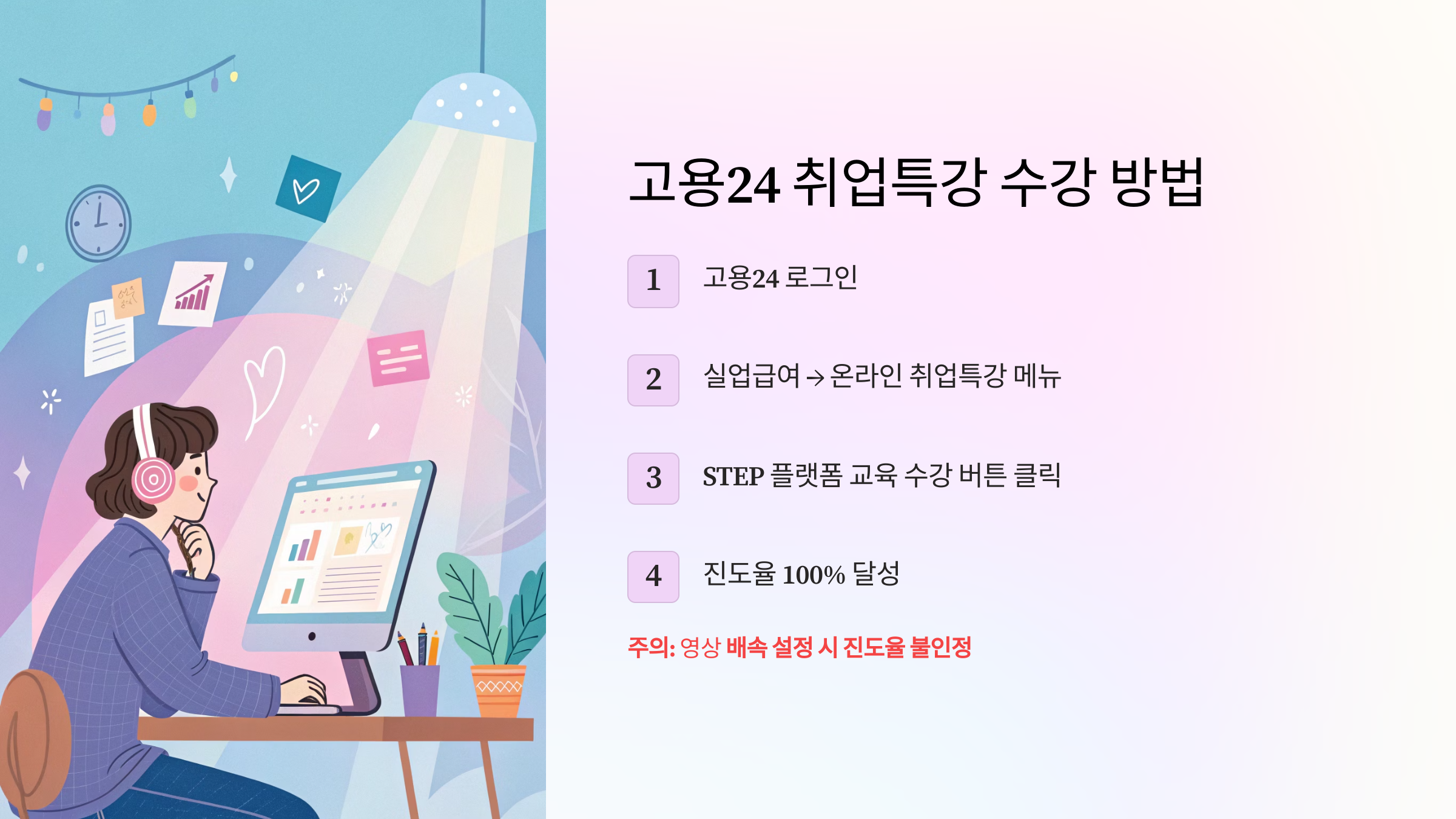 | 수강 완료 확인 | STEP → 고용24 자동 연계 | 배속 시 진도율 인정 안됨 |